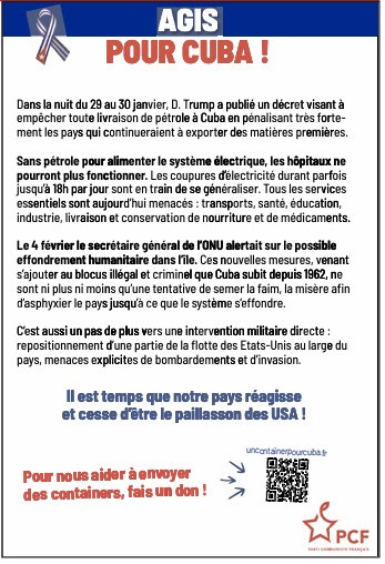 Cuba subit, depuis plus de 70 ans, un blocus insupportable de la part des États-Unis qui punit en toute illégalité les états, les institutions, les personnes, les entreprises, les banques, les artistes, les sportifs qui nouent des relations avec la grande île des Caraïbes. Après l’enlèvement du Président vénézuélien, Nicolas Maduro, Donald Trump et son …